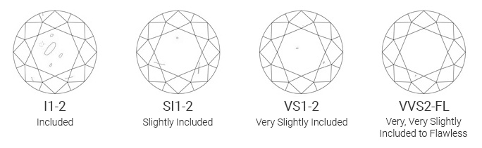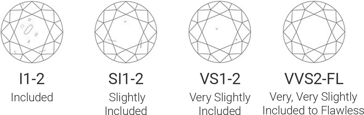 A diamond’s Clarity is determined by the amount and visibility of inclusions (the tiny pinpoints, markings and clouding that affect a diamond’s overall appearance). The fewer inclusions or blemishes there are, the higher the diamond’s value.