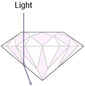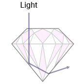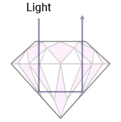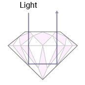 When a diamond is well cut, light enters through the table and travels to the pavilion where the light bounces from one side to the other before reflecting back out through the table. How the light moves within a diamond is dependent on its cut, and the result of a good cut is the brilliant, flashing, and fiery effect that makes a diamond so attractive.