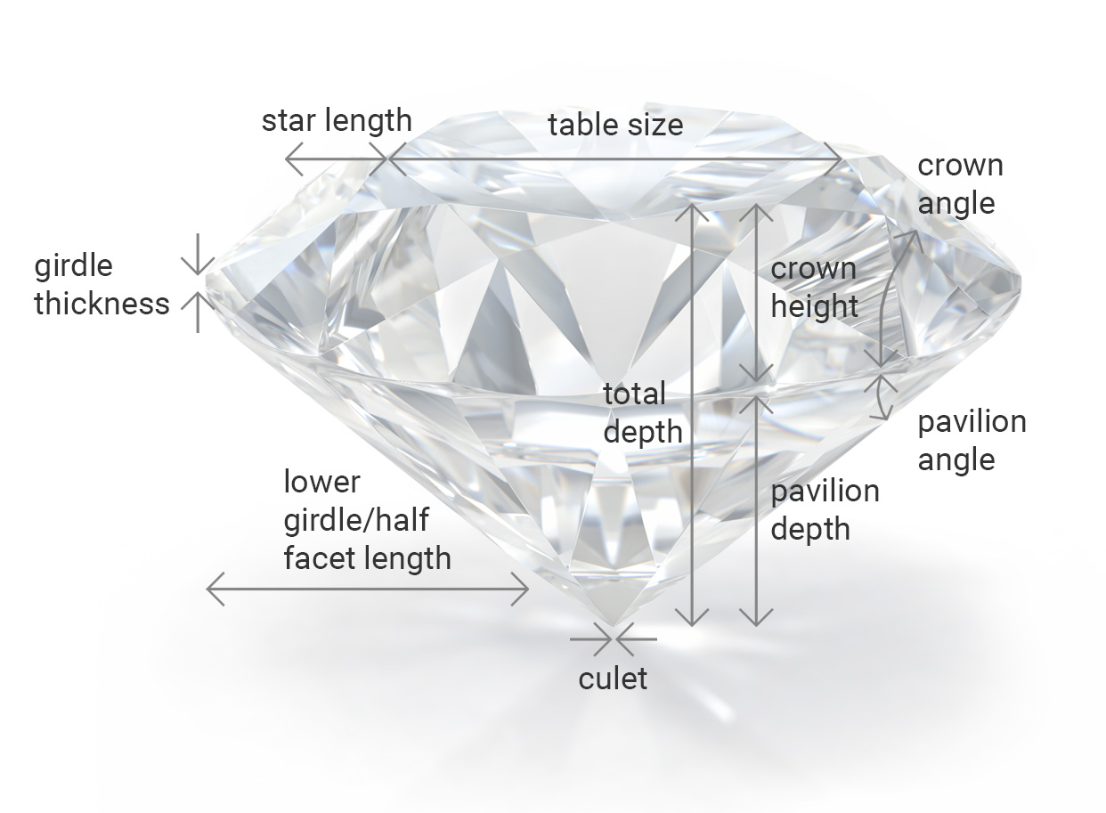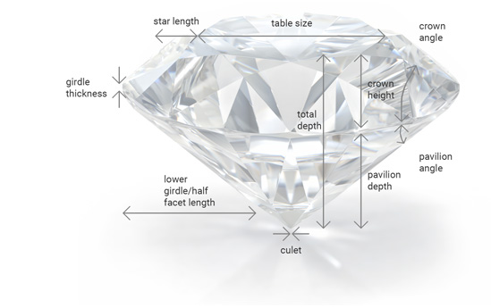 Every diamond, no matter its shape or size, shares a basic structure. However, each individual diamond will have its own distinct set of properties and proportions that defines its anatomy: