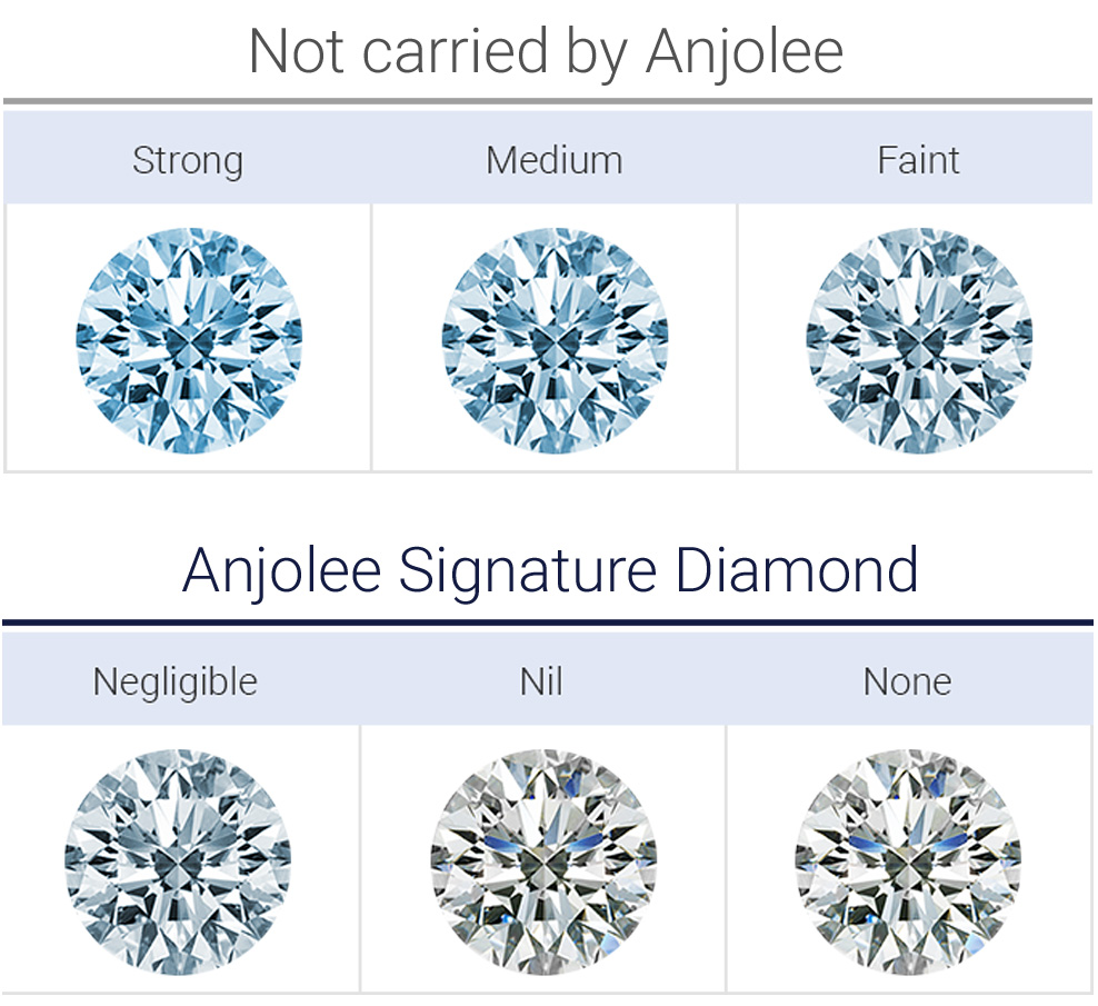 Non, Nil, Negligible Non, Nil, Negligible | No fluorescence, no influence on color No fluorescence, no influence on color. | Anjolee Signature Diamonds |