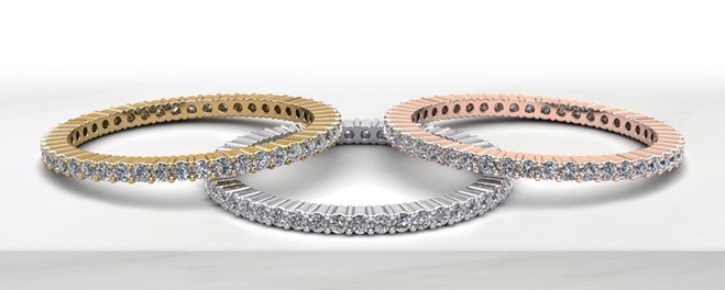 The most popular for jewelry is 14 karat gold which is 58.3% pure gold. The remaining percentage is comprised of alloy metals. Anjolee’s entire jewelry line can be made in 14k White or Yellow Gold.