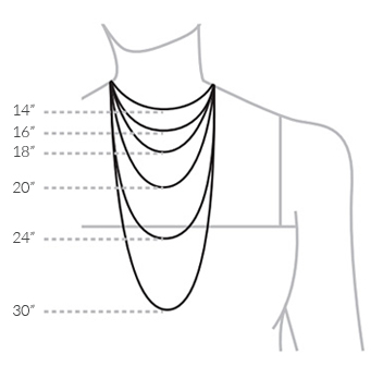 If you are ordering a diamond necklace, it should hit the center of your neckline. The standard length for diamond necklaces is 16" however, the length can be adjusted simply by adding small links to the back end of the necklace. In general, the three main categories for diamond necklace lengths are: the 'standard' length ( 16" ), the 'princess' length ( 18" ), and the 'opera' length ( 24" ),