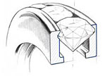 A bezel setting is when a diamond is completely surrounded by metal. Primarily known for its clean appearance and sturdiness, this setting style encases the outer edge of the diamond in a fine frame of metal. When set in platinum or white gold, it can make the diamonds appear larger. The bezel setting is often used with round shaped diamonds, but also works well with other diamond shapes.