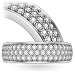 The pave setting allows light to reflect off the many facets of a diamond. It uses numerous small diamonds set with tiny prongs to create a continuous surface of radiance and shimmer. This setting type is preferred for engagement rings and earrings.