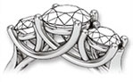 A trellis setting resembles latticework and is constructed of four interweaving prongs that hold a center diamond in place.