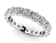 Traditional eternity rings have a constant row of diamonds that completely encircle a band, signifying everlasting love. Eternity rings can be used both as wedding rings or anniversary rings and are a great way to express your love for someone. The advantage of an eternity ring is that since there are diamonds set all the way around the ring, it sparkles from all sides.